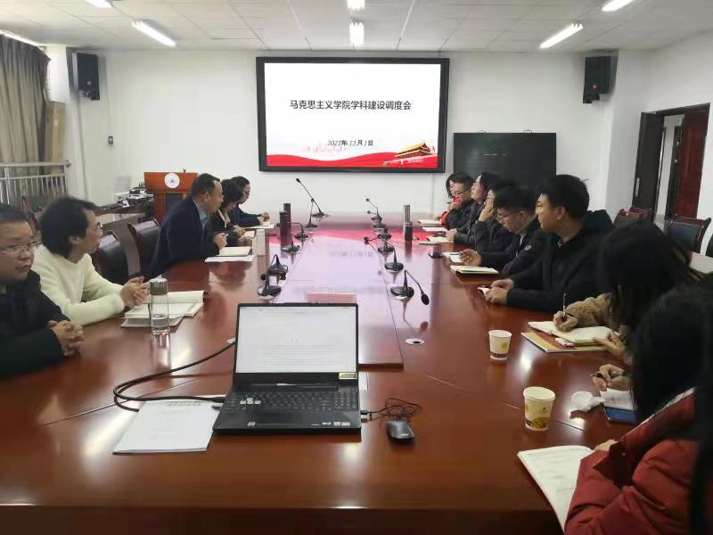 马克思主义中国化教研室负责人禹辉映就申请马克思主义理论一级学科硕士学位授权点预填表情况进行汇报,并对相关指标展开全面分析,指出在学科方向与特色的凝练、代表性论文的数量、教学科研成果获奖等方面存在的差距和不足。