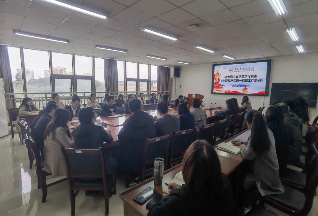10月13日中午,学院在会议室组织全体教职工党员进行政治理论集中学习,认真学习新修订的《中国共产党统一战线工作条例》(以下简称《条例》)精神。集学习由学院党委副书记王万江主持。
