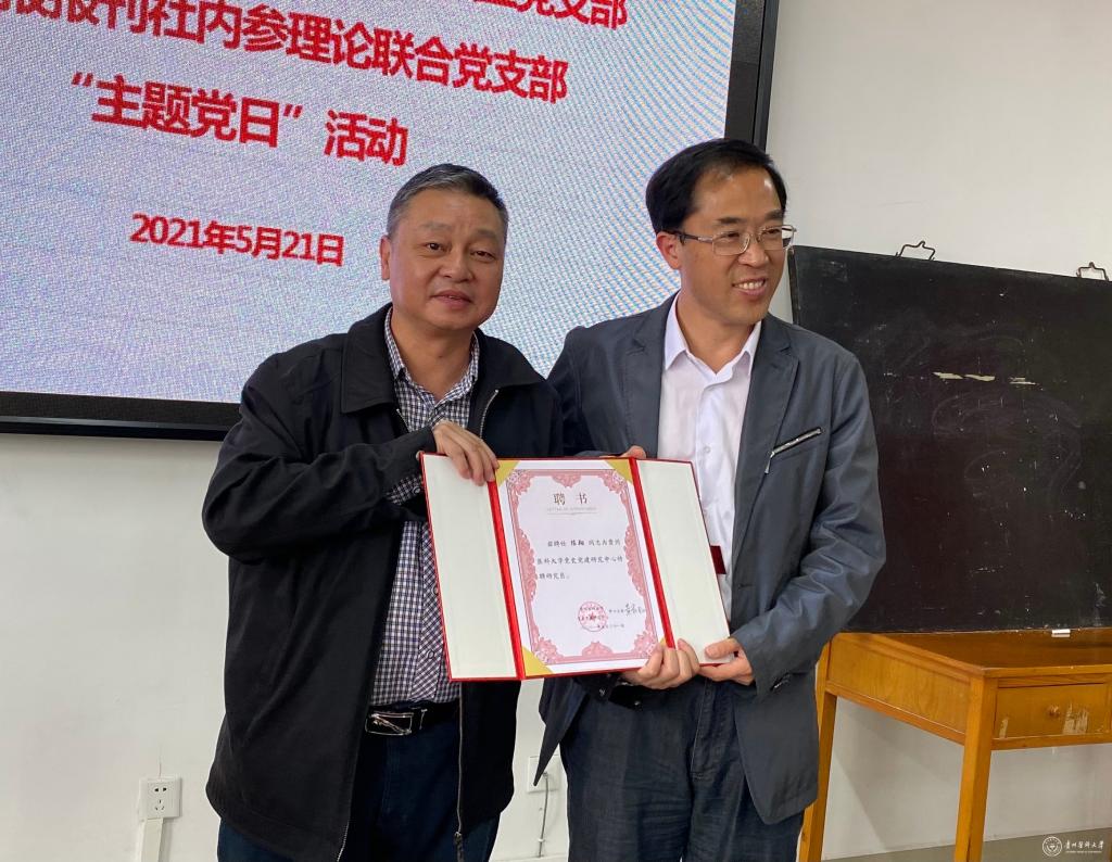 “主题党日”活动中,举行了党史党建研究中心特聘研究员聘任仪式。战勇向陈翔、肖郎平、徐海星3位同志颁发了必威西汉姆联党史党建研究中心特聘研究员聘书,代表学校感谢贵州日报社长期以来对学校的关心与支持,希望贵州日报社继续关注指导bw必威西汉姆联的建设发展。