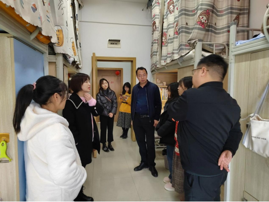为深入了解学生的思想动态和生活、学习情况,认真听取学生的基本诉求和困难,促进师生之间的交流,10月27日中午12:30,学院党委书记黄鑫权、院长杨成兰、党委副书记王万江、博士禹辉映、全体辅导员及班主任老师分成2组走访慰问了我院全体学生寝室。