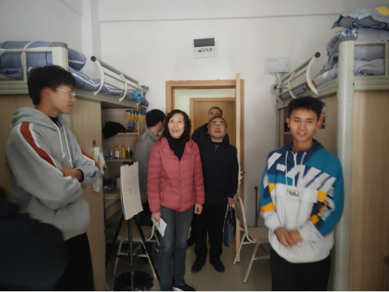 在走访过程中,黄鑫权询问了学生的日常生活和学习情况,同时对宿舍的卫生、物品摆放、桌面整洁提出了要求,强调了学生宿舍的安全文明用电问题,严禁宿舍内使用大功率电器,以免发生火灾等危害生命财产安全的事件。杨成兰叮嘱同学们进大学后更要好好学习,找到适合自己的学习方法,尽快适应大学生活,同时注意作息时间的安排,养成良好的生活习惯,营造积极健康的宿舍文化,做一个文明的大学生。