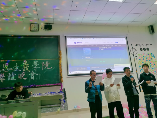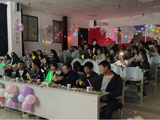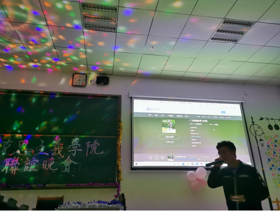 晚会首先以“小情歌”开场,一首甜甜的小情歌温暖了大家的心,也开启了欢乐状态。接下来的游戏环节,大家积极性被充分调动起来,纷纷自愿参与其中,还有桃花瑶手语舞,诗朗诵和歌曲等精彩节目应接不暇。在同学们的欢呼声中,禹辉映和王东即兴联合演唱《启程》,带动了现场的热闹气氛。