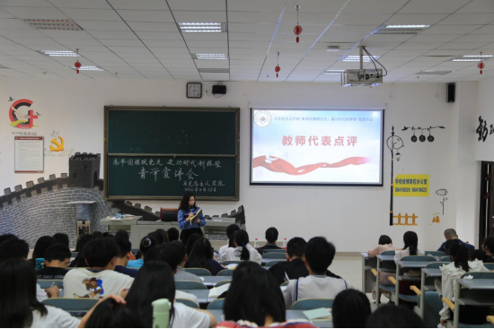 黄鑫权对本次宣讲活动进行了点评。他赞扬了同学们积极认真的学习态度,同时也指出了他们演讲技巧方面的不足,最后鼓励大家,不管在学习上还是生活上都应该有“脚踏实地,不怕困难”的精神。肖蓉提出指导意见,一是准确理解宣讲主题的内涵。二是认真准备讲稿,精心制作PPT。三是注意素材的运用以及服装的选择等细节。四是要学会总结经验,精益求精。赵彦风建议同学们一定要特别熟悉宣讲内容,避免演讲时因紧张出现卡壳现象。