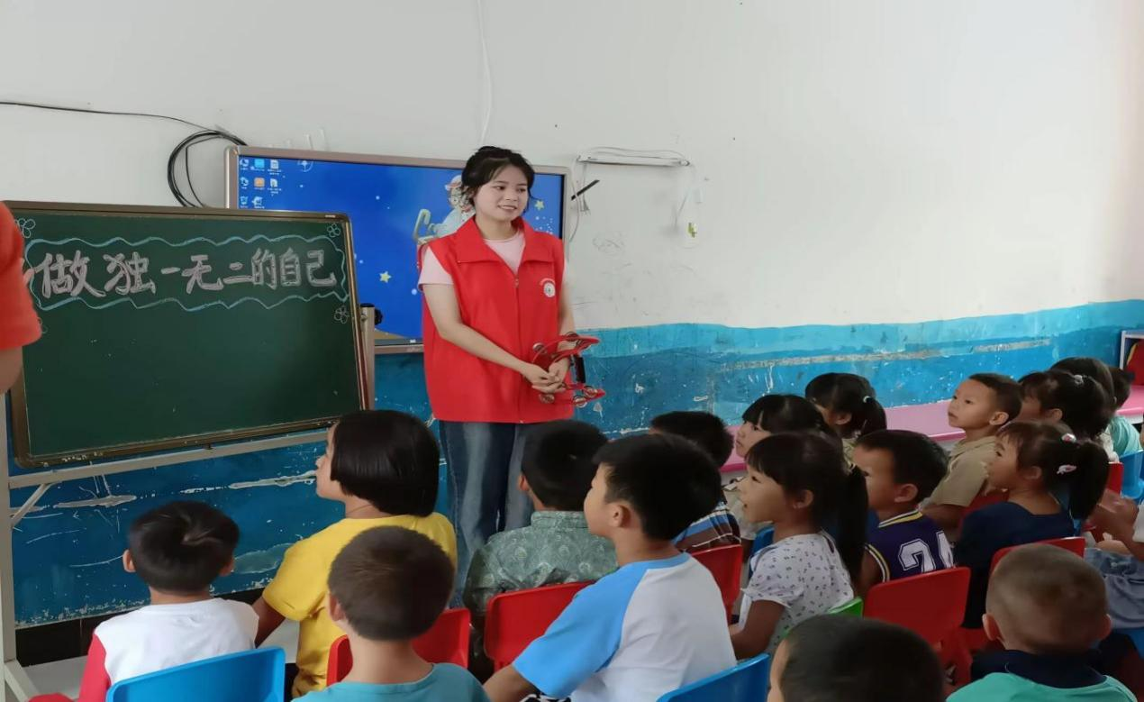 见面会后,实践队员开展了以“关爱留守儿童,促进健康成长”为主题的活动。活动中,实践队员以趣味游戏的方式向小学生开展思政教育并捐赠学习用品,既拉近了与他们的距离,又提高了他们学习的积极性,还培养了他们健康的学习与生活习惯。