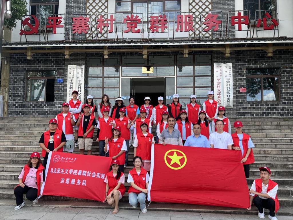 为深入学习宣传贯彻习近平新时代中国特色社会主义思想,引导和帮助广大青年学生上好“大思政课”,在社会课堂中“受教育、长才干、作贡献”,坚定信念听党话、跟党走,鼓励大学生为建设新时代中国特色社会主义贡献青春力量,7月9日,在学院党委副书记王万江、学院分团委副书记马景瑶、学生科苗建峰老师带领下,“bw必威西汉姆联暑期实践乡村振兴支队”赴贵安新区马场镇平寨村开展以“学习二十大 永远跟党走 奋进新征程”为主题的暑期“三下乡”社会实践活动。