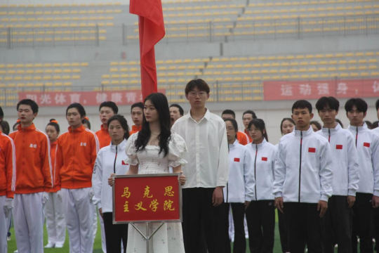 开幕式上,方队全体成员在学院党委副书记王万江的带领下有序入场。