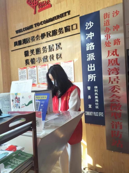 付诗琪在凤凰湾居委会便民服务窗口为居民开证明