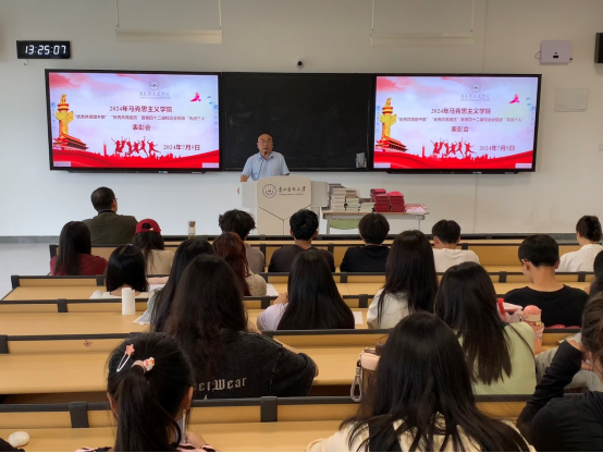 王万江作总结讲话,他首先对获奖同学表示热烈的祝贺,并对同学们提出了三点希望:一是要立足现实,确定目标。对自己的学习、工作等要有明确的规划,并脚踏实地完成。二是努力学习,锻造本领。要学真知、悟真理、增见识、长本领,知行合一、躬身实践。三是要满怀激情,勇挑重担。要无惧挑战、磨炼勇气。他希望受到表彰的同学珍惜荣誉、再接再厉,不负青春、不负韶华,保持昂扬斗志,做讲团结、讲奉献的马院人,为马院团学工作的高质量发展作出更大的贡献。
