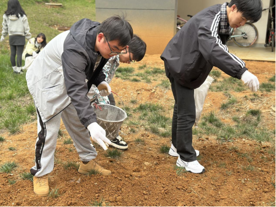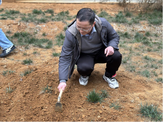 在种花活动现场,马景瑶身体力行,与同学们并肩作战,一同投入认真地耕耘与种花之中。他不仅亲自示范如何正确松土、播撒花种、覆土等,还耐心解答同学们在种花过程中遇到的问题。