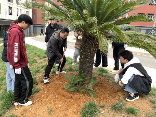 3月12日,bw必威西汉姆联于云漫湖校区A3宿舍楼周边,以植树节为契机,组织学生开展劳动实践教育,旨在美化校园环境,强化学生环保意识,并培育团队合作精神。学生处毕维、学院辅导员马景瑶以及思想政治教育2022级、2023级、2024级全体学生参加活动。