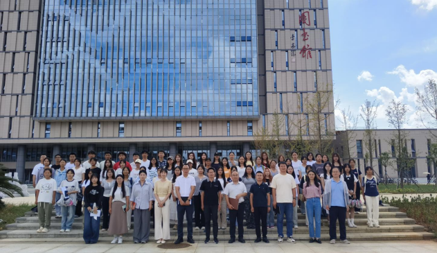 师生在图书馆门楼前合影留念