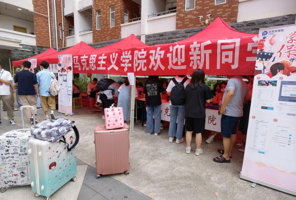 今年我院迎来首届新生,学院领导高度重视,多次召开党政联席会及迎新专题会,制定迎新方案,部署相关工作,保证迎新工作顺利有序进行。8月28日,我院思想政治教育专业的100名2021级本科新生报到入学。学院党委书记黄鑫权、院长杨成兰、副书记王万江到迎新现场检查指导工作。
