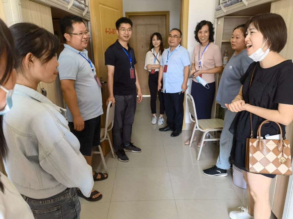 学院领导、专业课教师、辅导员及班主任等一行人下午到新生寝室进行走访。充分了解新生情况,为同学答疑解惑,关心学生身心健康,着重强调人身安全、财产安全、水电安全等问题,希望新同学以高标准严要求,做好未来学习和生活规划,追求卓越,开启人生新篇章。