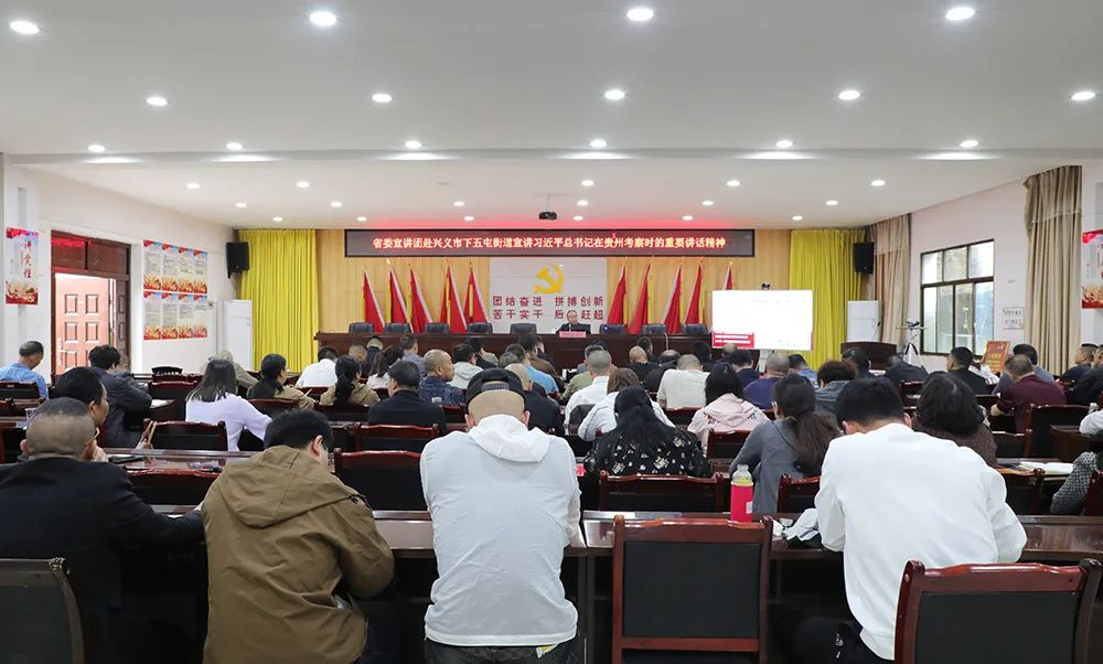 4月12日,深入学习贯彻习近平总书记在贵州考察时的重要讲话精神省委宣讲团报告会在兴义市下五屯街道、万峰林街道举行。省委宣讲团成员、bw必威西汉姆联党委副书记王万江作宣讲报告。