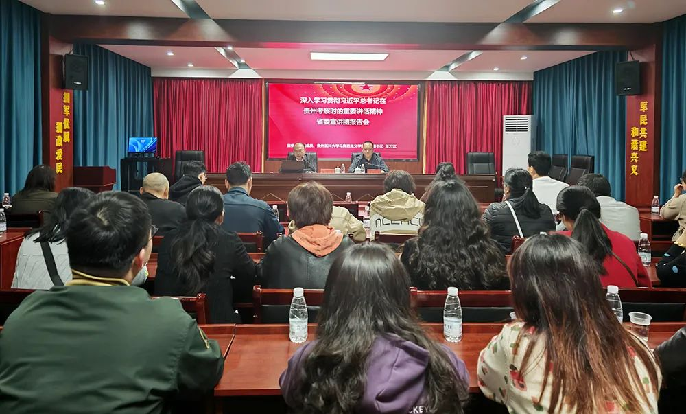 报告会强调,习近平总书记始终心系贵州发展、情系贵州人民。总书记再次亲临贵州考察,是贵州各族干部群众期盼已久的大事喜事盛事。总书记在贵州考察时的重要讲话,与对贵州工作系列重要讲话重要指示在理念和方向上一以贯之,在目标和要求上与时俱进,共同构成了新时代新征程贵州工作的总遵循总纲领。各级党员干部要把学习宣传贯彻习近平总书记在贵州考察时的重要讲话精神作为当前和今后一个时期全省上下的首要政治任务和长期战略任务,必须从政治和全局高度把握,按照省委的安排部署,认真抓好学习宣传贯彻,让习近平总书记重要讲话精神在贵州大地落地生根、开花结果。