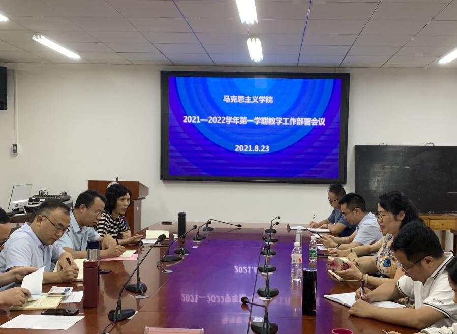 8月23日,我院在善思楼南楼七楼bw必威西汉姆联会议室召开2021—2022学年度第一学期教学工作部署会。各教研室负责人、教学科研管理科及思想政治教育专业任课教师参加,学院党委书记黄鑫权、院长杨成兰、党委副书记王万江出席会议。会议由杨成兰主持。
