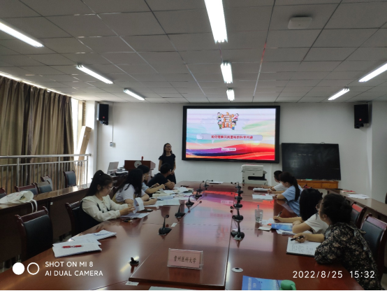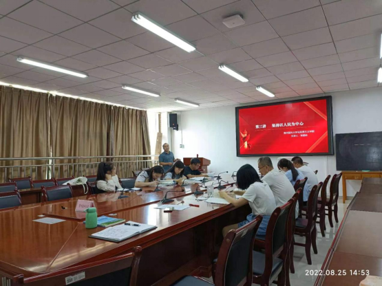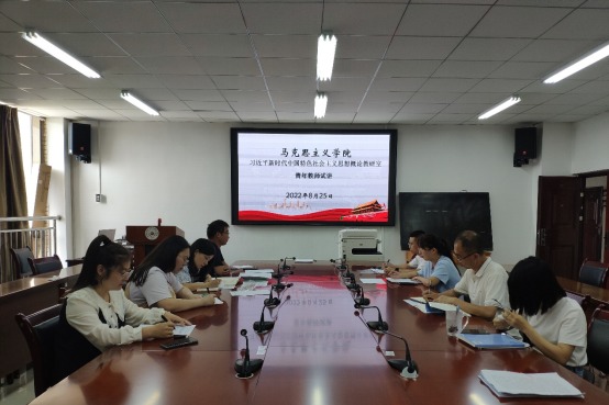 为确保《习近平新时代中国特色社会主义思想概论》课程教学任务高质量完成,2022年8月25日下午,习近平新时代中国特色社会主义思想概论教研室组织教师黄连舟、张顺林、赖小妹、田秀华和陈元书五位教师在南校区善思楼(南)七楼学院会议室开展本学期第二次试讲活动暨新学期集体备课活动,学院教学科研管理科负责人凌富亚及教研室全体专、兼职教师参加,试讲活动由教研室主任王琴主持。
