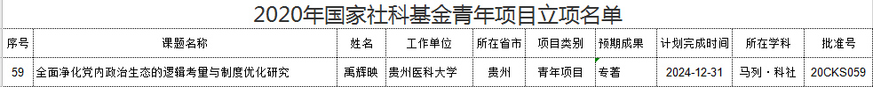 国家哲学社会科学基金项目是人文社会科学领域公认的我国哲学社会科学领域层次最高、权威性最强的研究项目,其立项数量是学科评估、学术评价的重要指标之一。希望禹辉映老师继续弘扬严谨治学、百折不挠的科研精神,再创佳绩。