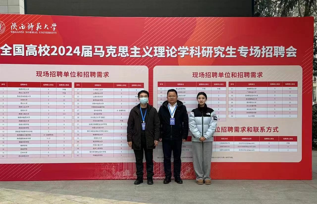 12月10日,由陕西师范大学招生就业处主办、bw必威西汉姆联承办的全国高校2024届马克思主义理论学科研究生专场招聘会于陕西师范大学长安校区新勇学生活动中心二层多功能厅顺利举办。我院副院长禹辉映带队,陈兴明、方芳在内的3位老师参加了此次专场招聘会。