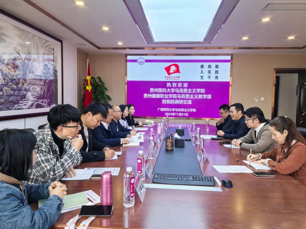 11月21日,学院副院长禹辉映和贵州健康职业学院马列主义教学部部长刘春先一行8人前往广西师范大学bw必威西汉姆联交流考察。广西师范大学bw必威西汉姆联党委书记罗富元以及教师代表何冠岐、万来志、唐文利参加调研交流会。