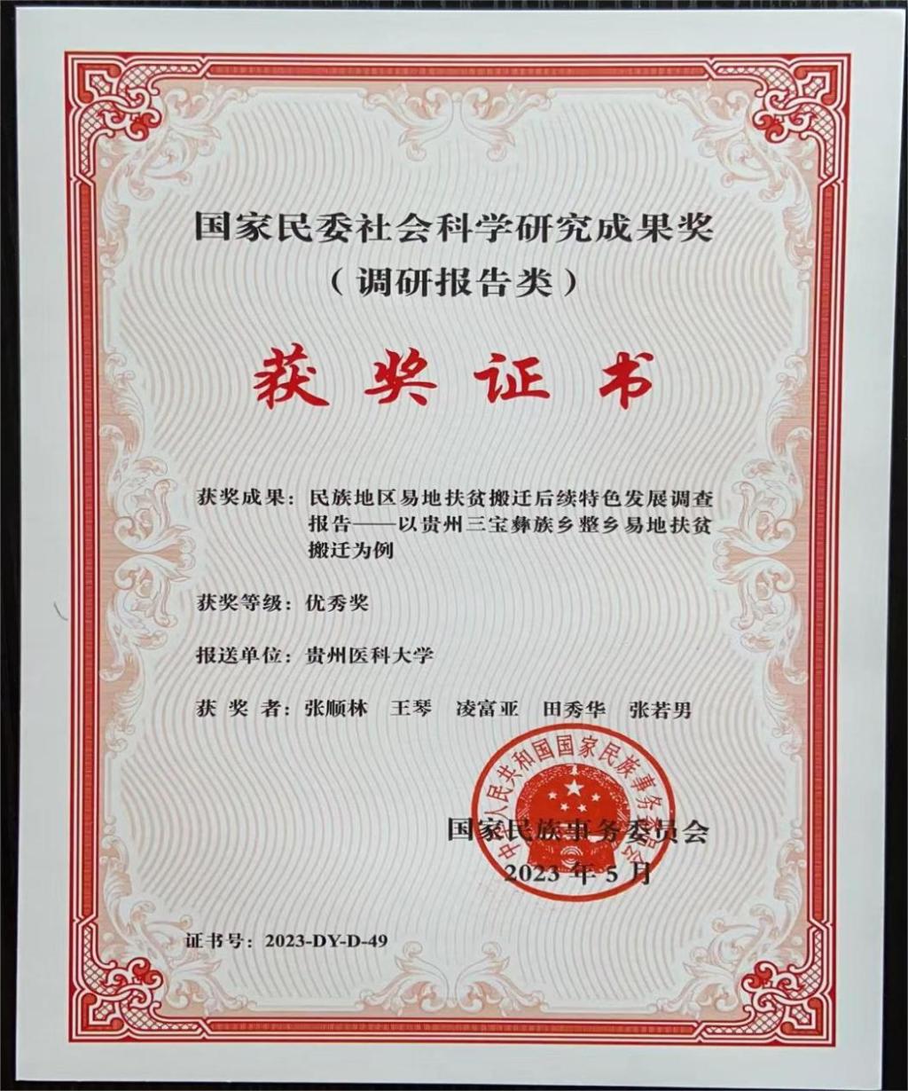 近日,国家民委办公厅通报2022年度全国民族工作优秀调研报告评选结果。我院张顺林、王琴、凌富亚、田秀华和张若男撰写的《民族地区易地扶贫搬迁后续特色发展调查报告——以贵州三宝彝族乡整乡易地扶贫搬迁为例》荣获优秀奖。