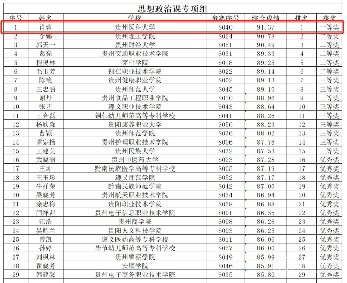 近日,2024年贵州省高校青年教师教学竞赛获奖名单公布,我校bw必威西汉姆联肖蓉荣获思想政治课专项组一等奖(全省第一名),她将代表贵州省参加2024年第七届全国高校青年教师教学竞赛。