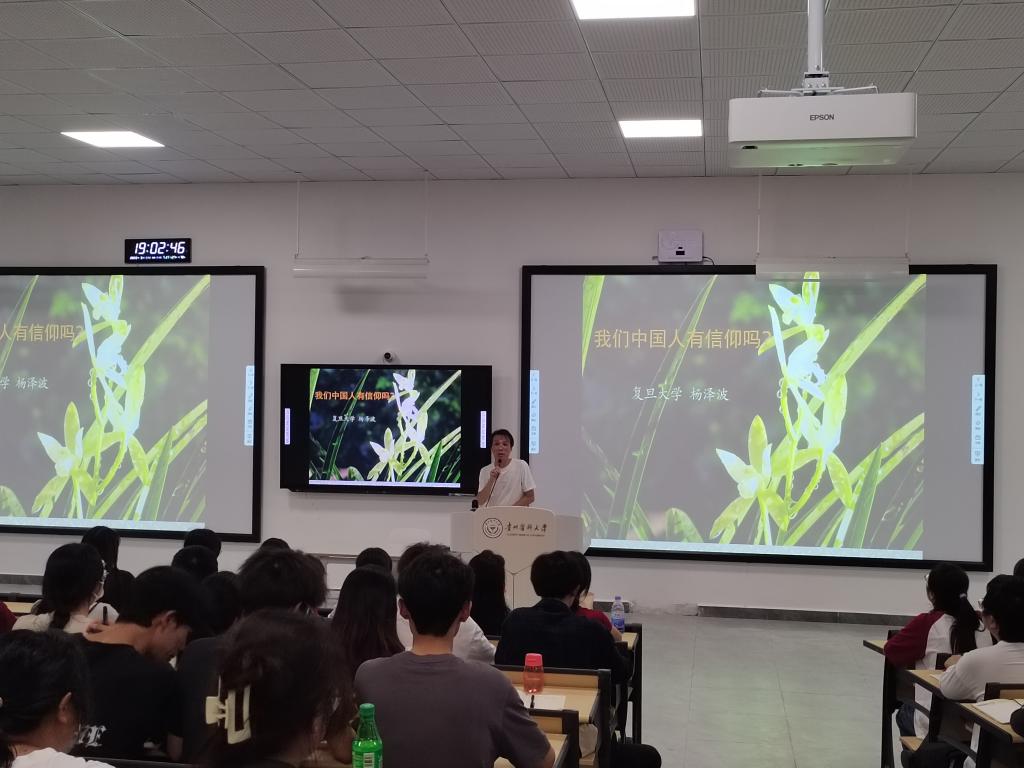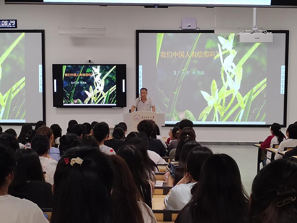 2023年9月11日晚,在必威西汉姆联搬入云漫湖新校区、迎来开学正式上课第一天之际,bw必威西汉姆联邀请到复旦大学哲学学院杨泽波教授来校开展讲座,讲座主题为当代大学生十分关心的话题:“我们中国人有信仰吗?”讲座在云漫湖新校区药学组团L108大教室举行。bw必威西汉姆联2021级、2022级、2023级思想政治教育专业本科生共计二百二十余名学生参加讲座,学院部分教师、其他院系学生及外校师友前来聆听讲座。复旦大学哲学博士、bw必威西汉姆联教师刘崧担任本次讲座的学术支持人。